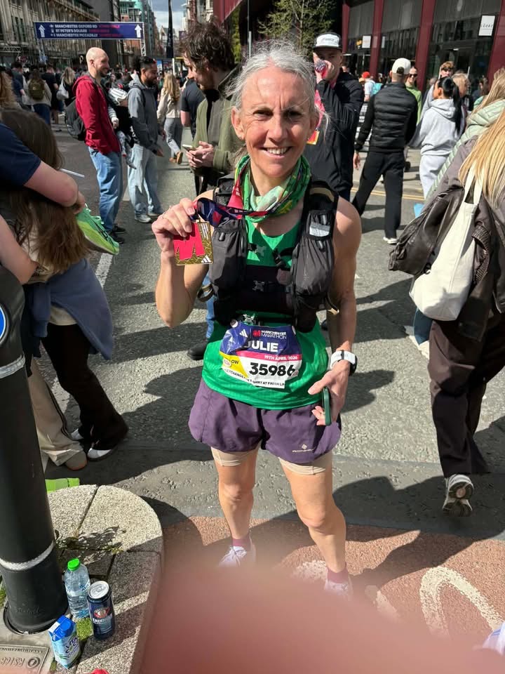 Manchester Marathon, always a club favourite, took place on Sunday and what a set of results we had! This gang have trained with dedication, commitment and in many cases worked hard to come back from injuries, and the work they put in showed in the results. Henry Brady had a massive PB and went well under 3 hours in 2:53 and club age graded silver standard. Aaron Buckland and Dom Ayton were next up with big PB's too, at 3:12 and 3:17, and bronze standards for both. Julie Holloway led the ladies home, and what a run to do it! Julie was rewarded with a massive PB at 3:42, club Gold Standard for age 55-59, and London Marathon Good for Age time. Madi Spencer fought back from injury to come in at 3:50 with a great run, and Tamara Hazlehurst was next in the PB queue with 3:50, silver standard for age 50-54, London GFA time, and a massive PB! Kirsty Fairbairn-Wint and Chris Lawrence were in next, both coming back from injury to get the race done, with Kirsty earning a club bronze, and Jess Monk did a fantastic run, in 5:30, achieving her first ever marathon distance not long after coming out of a plaster cast! Every medal was very well earned and deserved by a group that have trained hard for months and in some cases, years.
